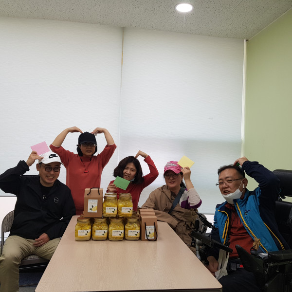 탈시설활동 오정미 뎃글수 0 조회수 2280 작성일 2020.04.21 코로나-19로 거주시설의 출입이 통제됨에 따라, 답답함과 무기력한 일상에 활력을 더하기 위해 탈시설활동에 참여했던 지역장애인이 거주시설 탈시설활동 짝지에게 과일청과, 쿠키 등 달콤한 간식과, 격려의 편지를 써 보내드렸습니다. 코로나가 하루 빨리 종식되어 함께 만날날을 기약하며 간식만들기에 참여해주신 재가 장애인분들께 감사드립니다.