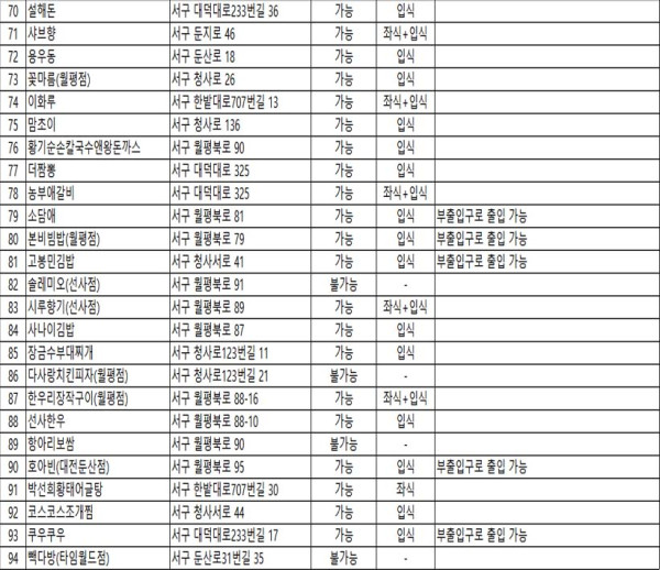 휠체어 출입이 가능한 식당 및 카페 조한비 뎃글수 0 조회수 1801 작성일자 2017.02.17 2024.07.08 12:52첨부파일 다운로드근린시설 조사 리스트-수정.xlsx (14.4K) + 422 대전광역시 서구 둔산동, 월평동 일대를 조사한 결과 휠체어 출입이 가능한 식당 및 카페 조사 리스트입니다.
