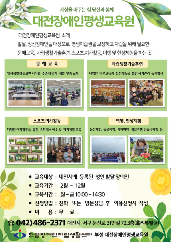 공지사항 HOME 커뮤니티 공지사항 공지사항 보도자료 캘린더 복지뉴스 백일장 전시회 공지사항 대전장애인평생교육원 평생교육 뎃글수 0 조회수 535 작성일자 2024.04.11 많은참여와 관심 부탁드립니다. 이전 다음 목록